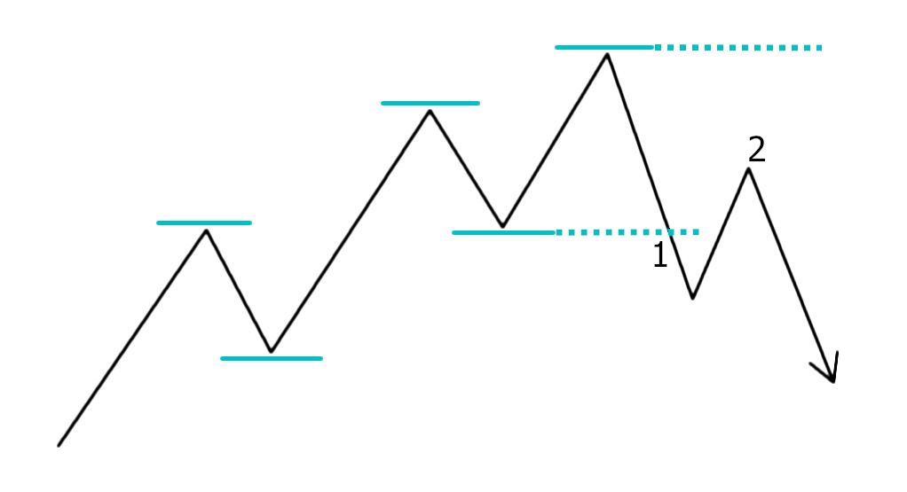 Vaikka hintaliike ei tekisikään nousutrendissä uutta korkeampaa huippua tai tekisi alemman pohjan, se ei tarkoita sitä, että trendi olisi automaattisesti päättynyt. Trendi voi tehdä ylimääräisen pullbackin ja jatkaa sen jälkeen uudestaan liikettä alkuperäisen trendin suuntaan.