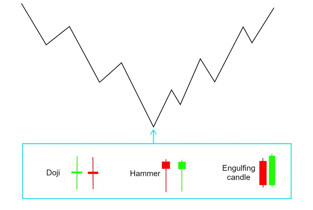 Lisäksi, jos hinta muodostaa sopivan näköisiä kynttilöitä, kasvaa trendin tai impulssin loppumisen todennäköisyys.