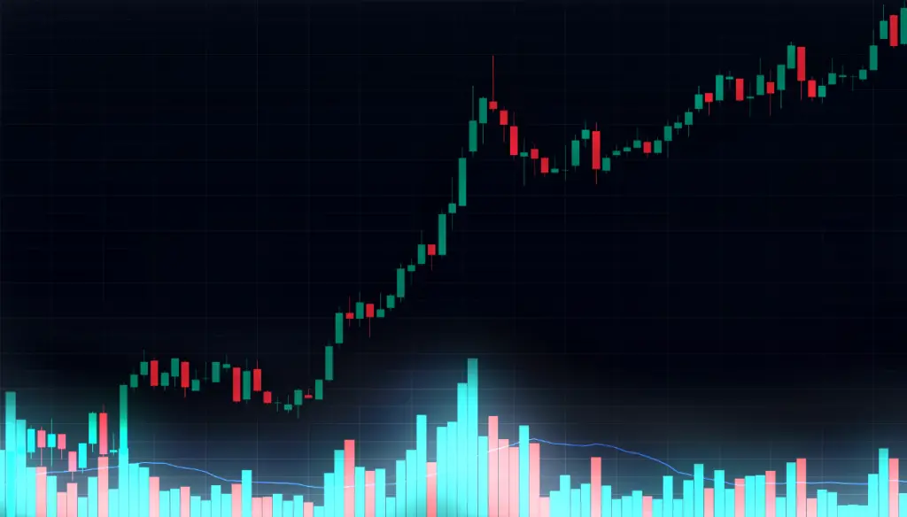 Volume tarkoittaa treidaamisessa kaupankäyntimäärää. Volume tyypillisesti näkyy volumepalkkeina chartin alareunassa. Volumepalkit näyttävät kaupankäynnin kokonaismäärää tietyllä ajanjaksolla.